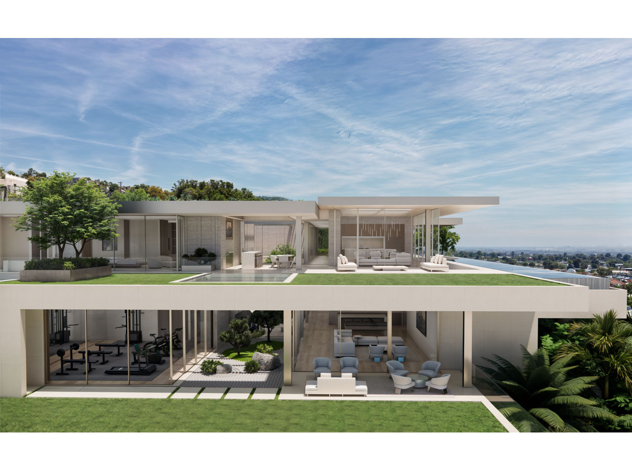 This 15,000 sq. ft. sleek abode is the embodiment of quintessential Los Angeles luxury living. The visual focus of the residence is driven toward the stunning south-facing views of the urban landscape stretching out toward the horizon—made evident with its sprawling open floor plan design, uninhibited use of retractable interior/exterior glass walls, and carefully curated specification of materials intended to blur the separation of interior and exterior spaces. We’re excited to work with the homeowners and incredible team to bring this family's dream home to life.